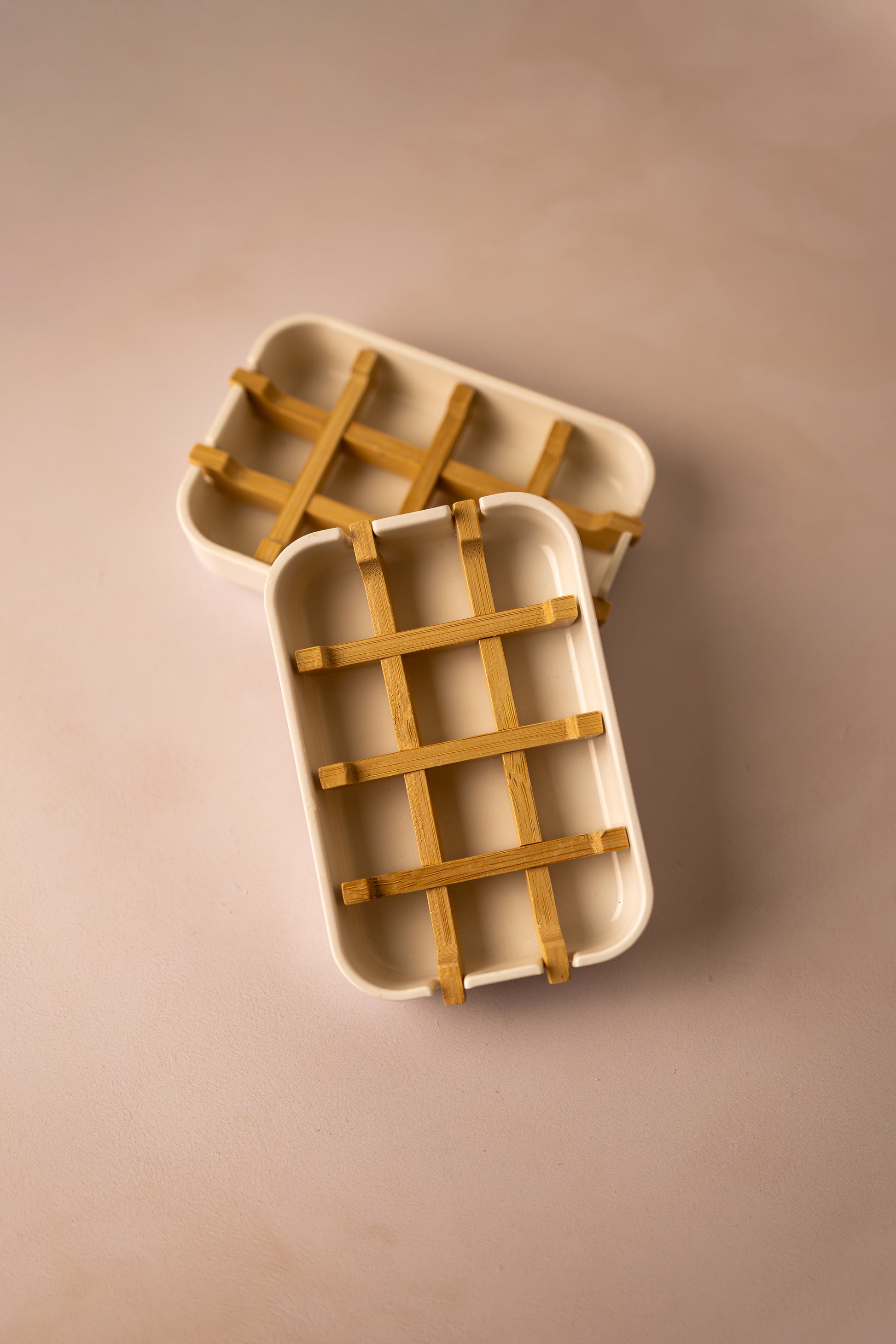 Sustainably crafted from natural bamboo, this eco-friendly soap dish extends the life of your bar by keeping it dry between uses. Its minimalist design adds a natural touch to your bathroom while helping reduce plastic waste.